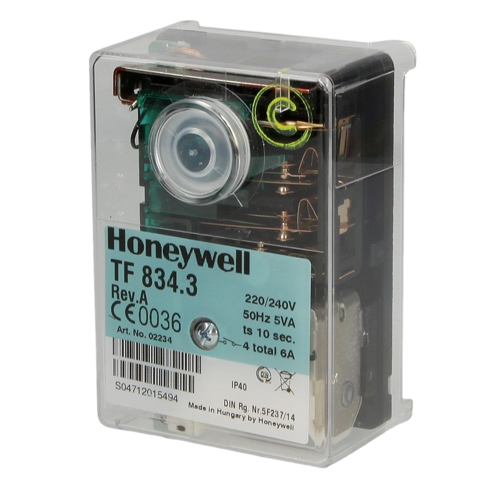 Le relais fioul TF 834.3 pilote et surveille les brûleurs à air pulsé avec ou sans réchauffeur ayant une consommation jusqu’à 30 kg/h . Un contact spécial dans le coffret de contrôle automatique shunte le thermostat de déclenchement du réchauffeur dès que le brûleur est en marche et que le signal de flamme est donné. Ainsi, toute interruption de fonctionnement du brûleur consécutive à une chute de température de fioul pourra être évitée. Lors d’une mise en sécurité du brûleur, le réchauffeur fioul est également mis hors tension.