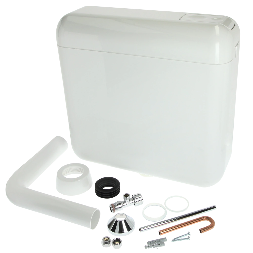 Toutes les informations sur le produit FournituresRéservoir de chasse d'eau apparent avec bouton d'arrêt du rinçage intégré et volume de rinçage réglable en continu de 6 à 9 litres. Le réservoir peut être raccordé sur trois côtés et est isolé contre la condensation.