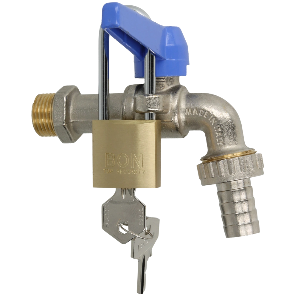 Le robinet à bille très solide avec disposif de fermeture et raccord de tuyau est particulièrement adapté aux points de puisage qui doivent être protégés contre tout accès non autorisé.