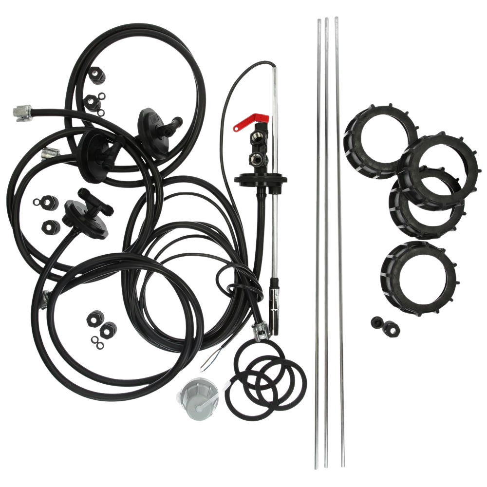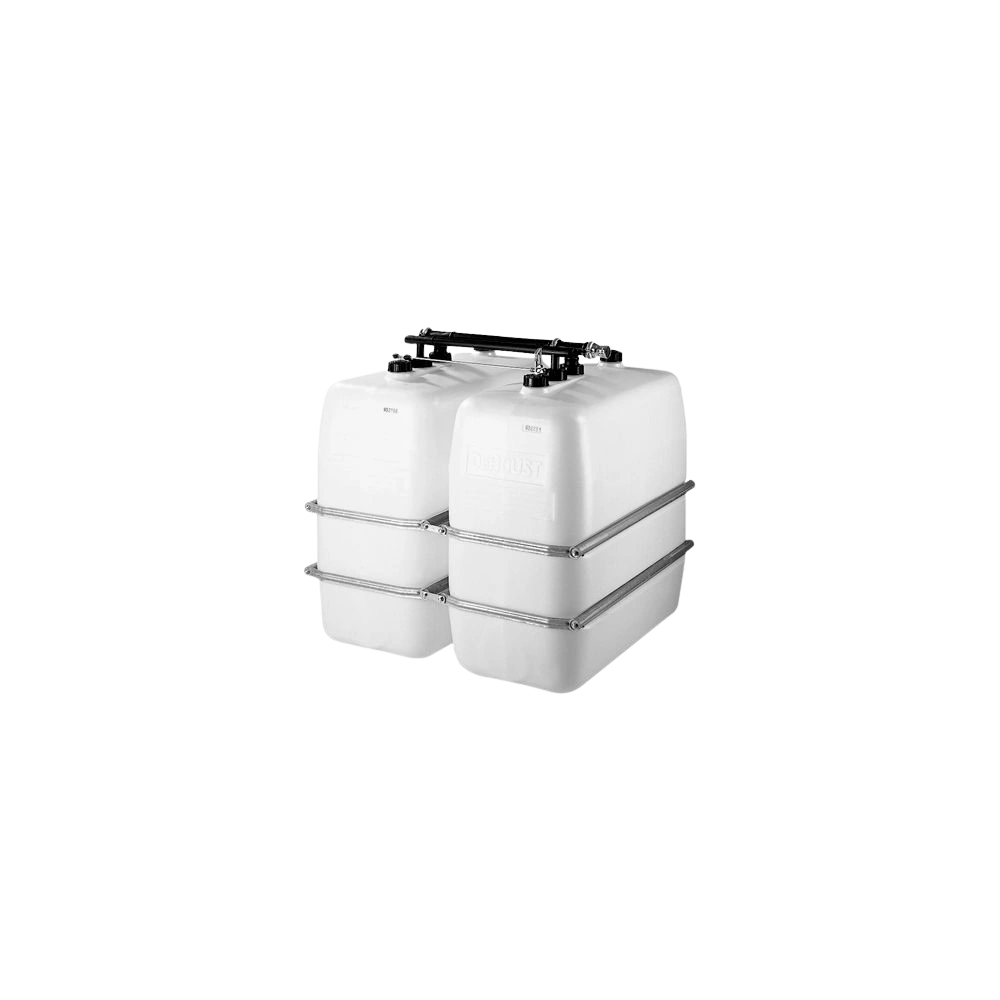 La robinetterie de prélèvement avec indicateur de valeur limite est utilisée pour 4 citernes groupées en plastique PE- et PE-PLUS 1000 - 2000 litres. Elle est homologuée pour toutes les citernes en plastique fabriqués par Dehoust et Kautex à partir de 1972.