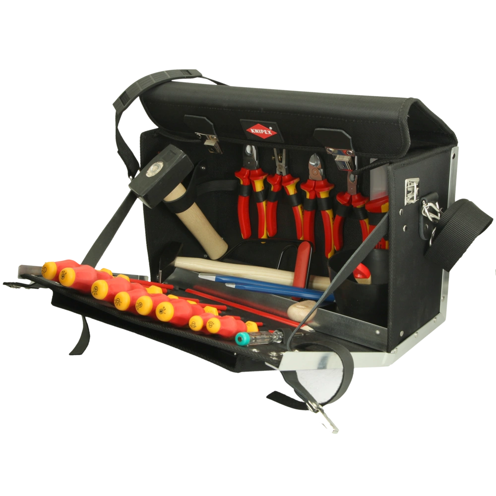 Toutes les informations sur le produit FournituresCette sacoche à outils convient aux apprentis électriciens. Le dessus est en cuir et l'intérieur en plastique résistant. La paroi avant est renforcée par des cornières en aluminium. Elle est munie de serrures verrouillables et d'une poche à documents sur la paroi avant.
