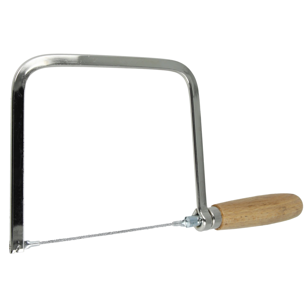 Toutes les informations sur le produitScie archet maniable avec fil en métal dur et poignée en bois.