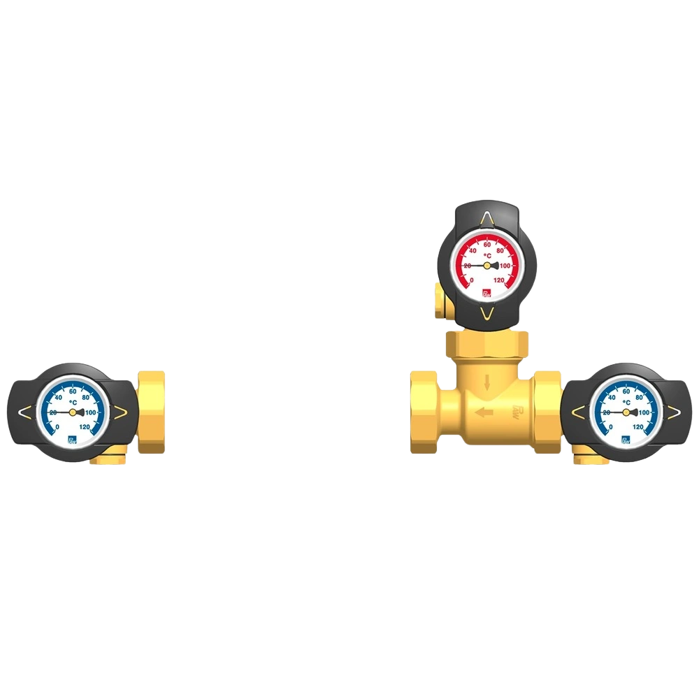 Toutes les informations sur le produit FournituresLe set de pompe RH50T-25 est conçu pour le maintien de la température de retour. La vanne de charge régule jusqu'à 50°C. Les thermomètres fournissent des informations sur les températures présentes. Le set peut être combiné avec des circulateurs standard équipés d'un raccord de 1 1/2".