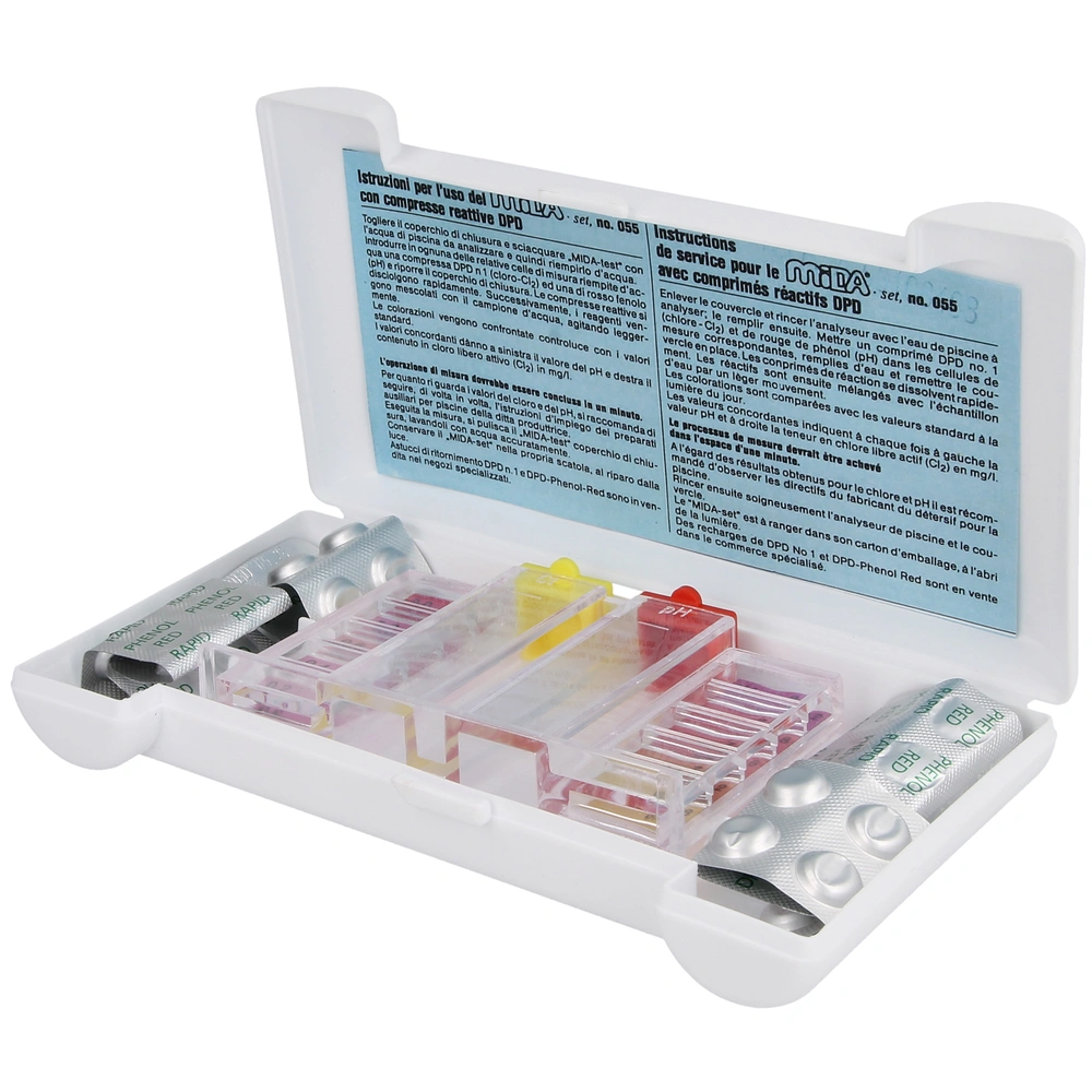 | Plage de mesure: | ph 6,8 - 8,2 et Cl 0,2 - 2,0 ppm |