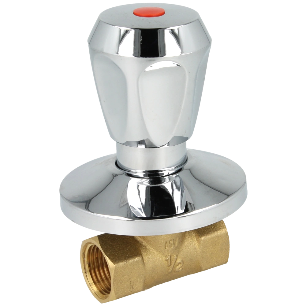Vanne encastrée pour eau chaude avec poignée isolée thermiquement, douille courte et rosace coulissante.