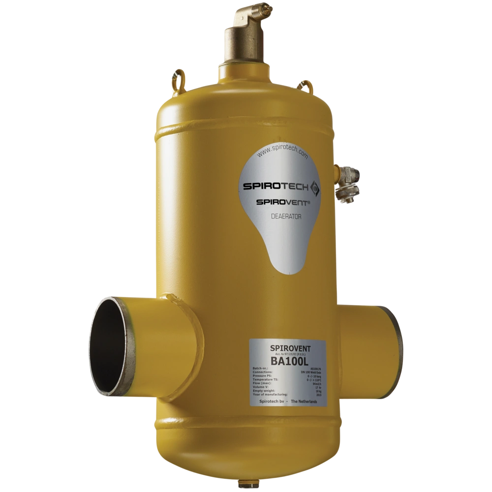Séparateur d'air pour l'élimination fiable des bulles d'air les plus fines dans les installations de chauffage, de refroidissement et de processus. Grâce au Spirorohr® spécial, recouvert d'un treillis de fils de cuivre, même les plus petites bulles d'air sont freinées dans le flux principal et remontent. L'air ainsi séparé est évacué vers l'extérieur par la vanne automatique sans fuite. Il en résulte une circulation totalement exempte de microbulles dans l'installation, ce qui garantit un fonctionnement parfait sans entretien, sans purge manuelle et sans bruits gênants. Le SpiroVent doit être installé horizontalement à l'endroit le plus chaud de chaque système.
