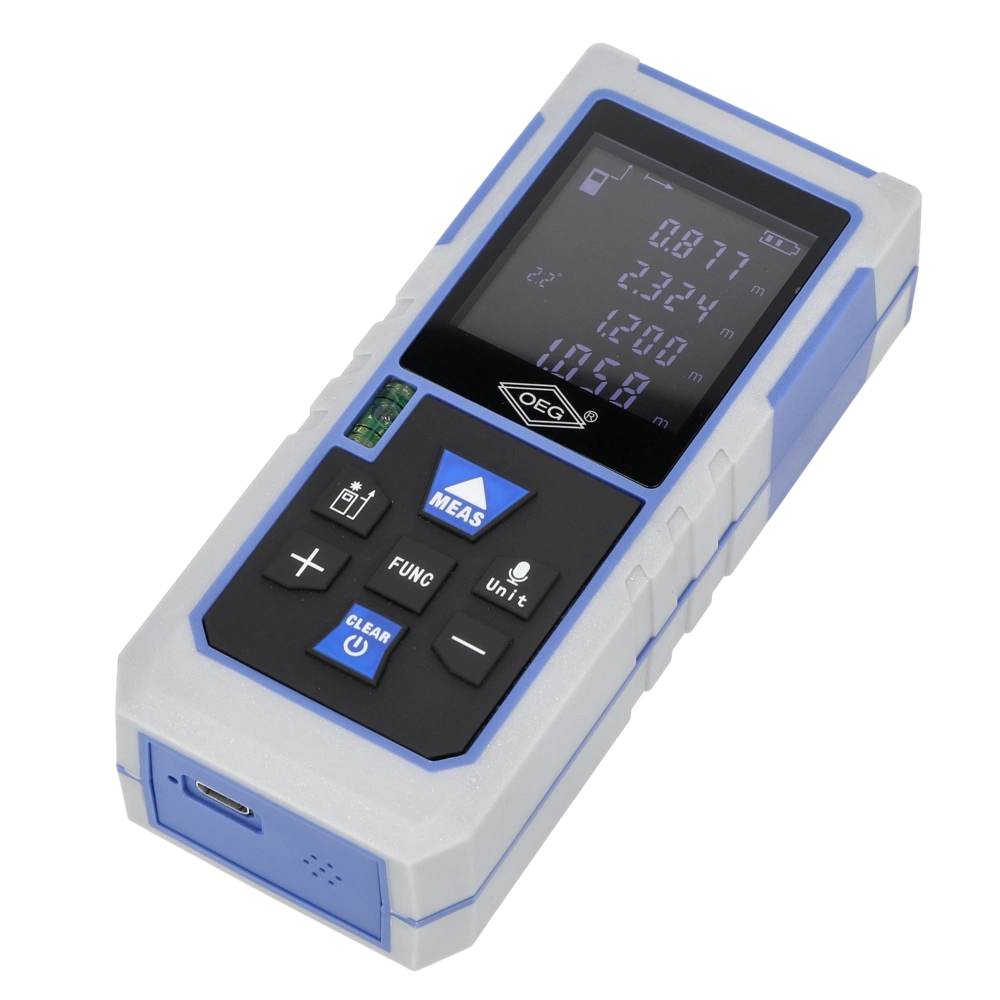Le télémètre dispose d'un capteur d'inclinaison électronique intégré qui facilite l'alignement horizontal grâce à l'angle de mesure en temps réel. De plus, le télémètre offre de nombreuses fonctions de mesure telles que la surface, le volume, la mesure de Pythagore, la mesure de longueur, la mesure de hauteur, etc. et peut donc être utilisé de nombreuses façons comme appareil de mesure mobile.
