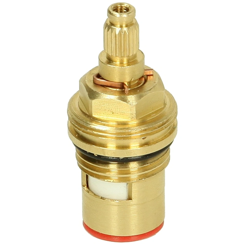 Tête de robinet d'eau chaude à étanchéité céramique utilisable pour différentes robinetteries. Un quart de tour suffit pour ouvrir ou fermer la partie supérieure.
