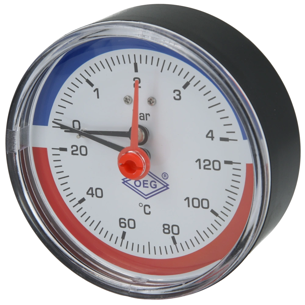 Le thermomanomètre se compose d'un système de mesure de pression à tube de Bourdon et d'un système de mesure bimétallique intégré pour mesurer simultanément la température. Les deux...
