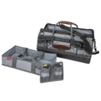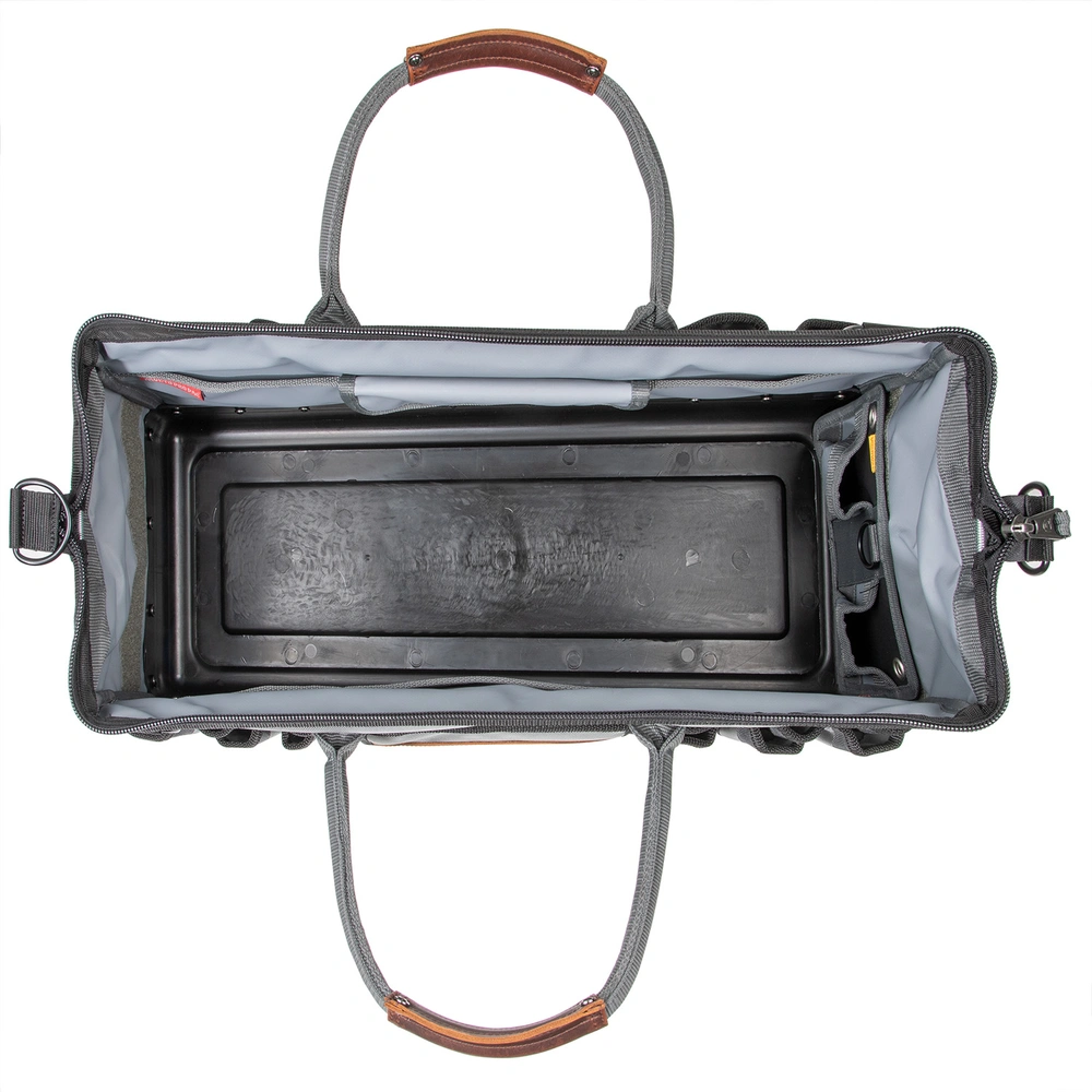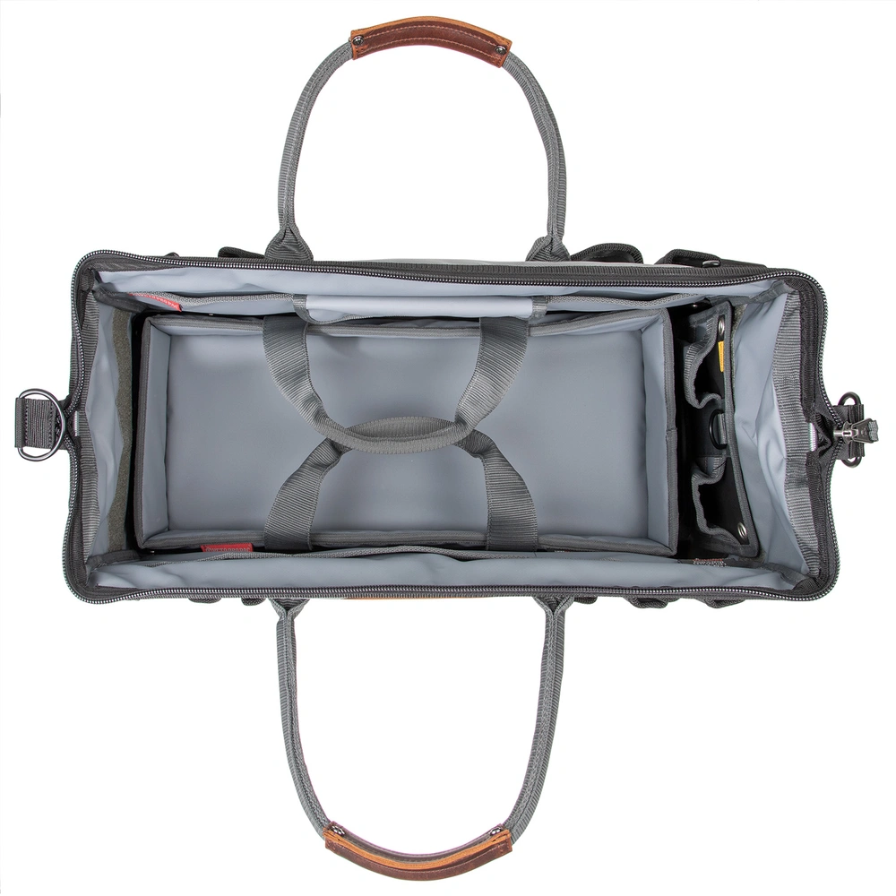 Toutes les informations sur le produit FournituresSacoche à outils extrêmement robuste en toile de nylon indéchirable et imperméable avec fond en plastique étanche. La sacoche offre un très grand espace de rangement et de nombreux compartiments. Des œillets solides offrent un support supplémentaire pour les machines ou les accessoires. Les panneaux d'outils peuvent être retirés grâce à la fermeture velcro. L'intérieur du sac est très facile à nettoyer grâce à son revêtement hydrofuge. Les poignées recouvertes de cuir et la bandoulière rembourrée assurent un transport agréable et sans douleur.