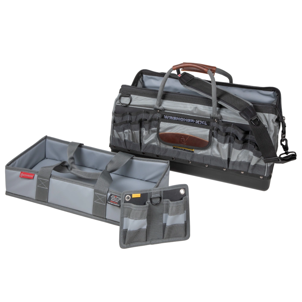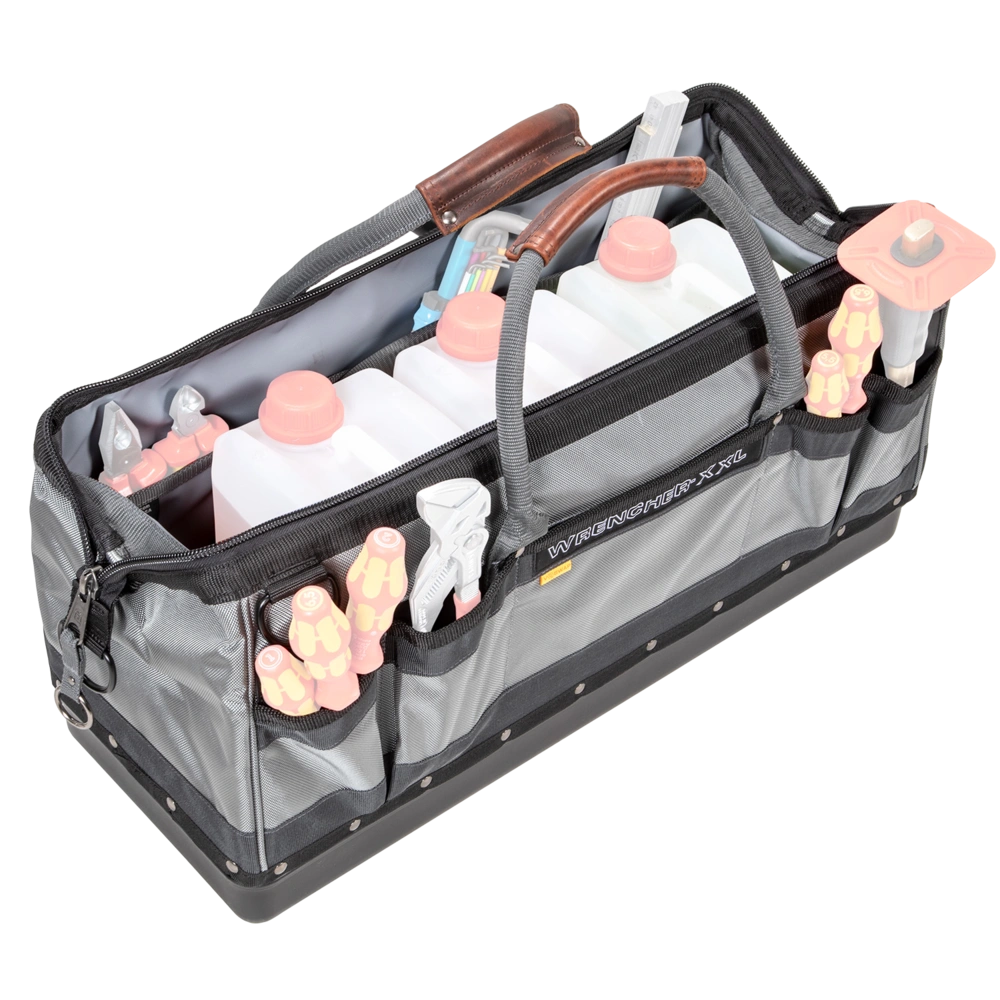 Sacoche à outils extrêmement robuste en toile de nylon indéchirable et imperméable avec fond en plastique étanche. La sacoche offre un très grand espace de rangement et de nombreux compartiments...