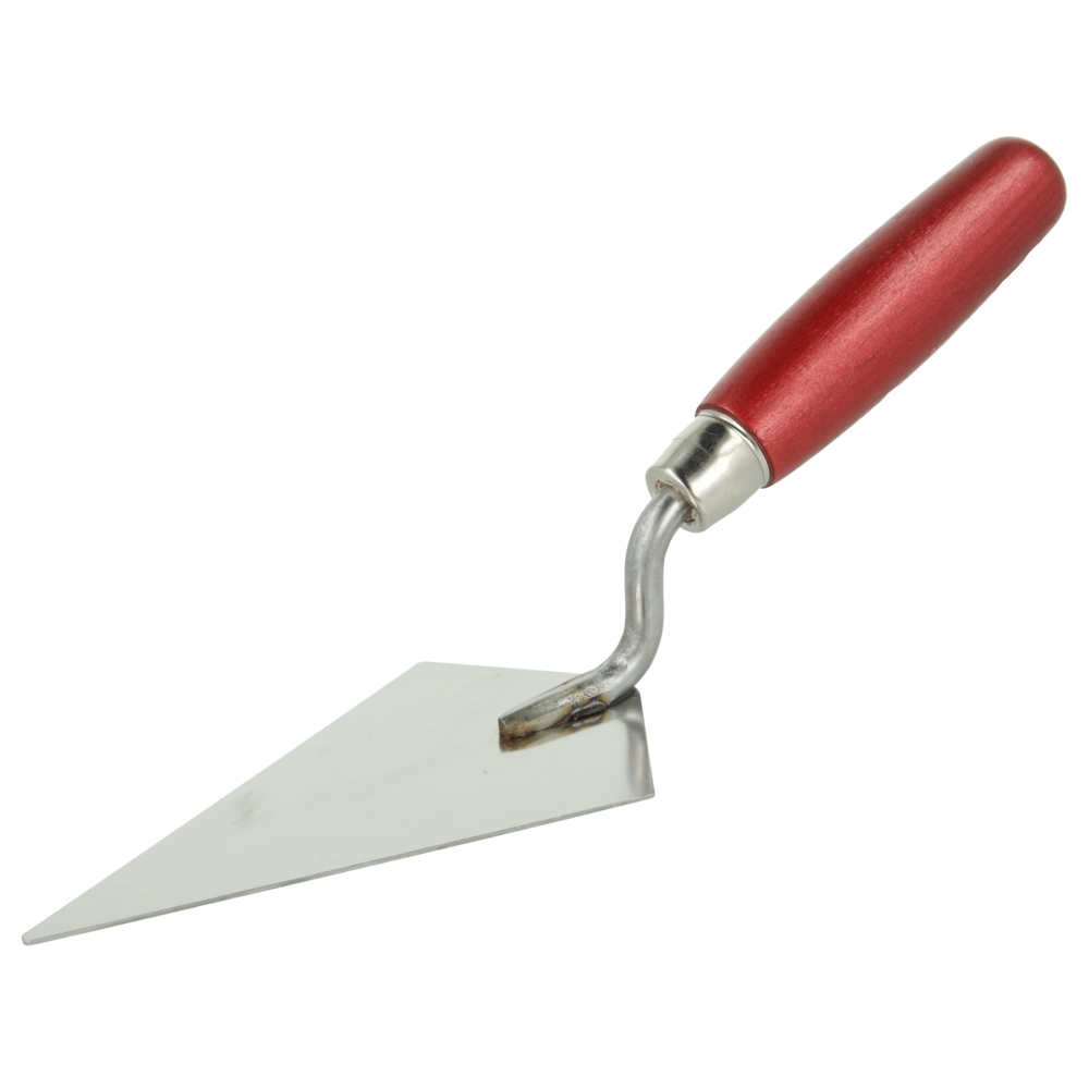 La truelle pointue Hamburger convient pour l'enduit de petites surfaces et de petits travaux de réparation. Lors du crépissage d'angles aigus et de petits angles, elle permet un travail précis.