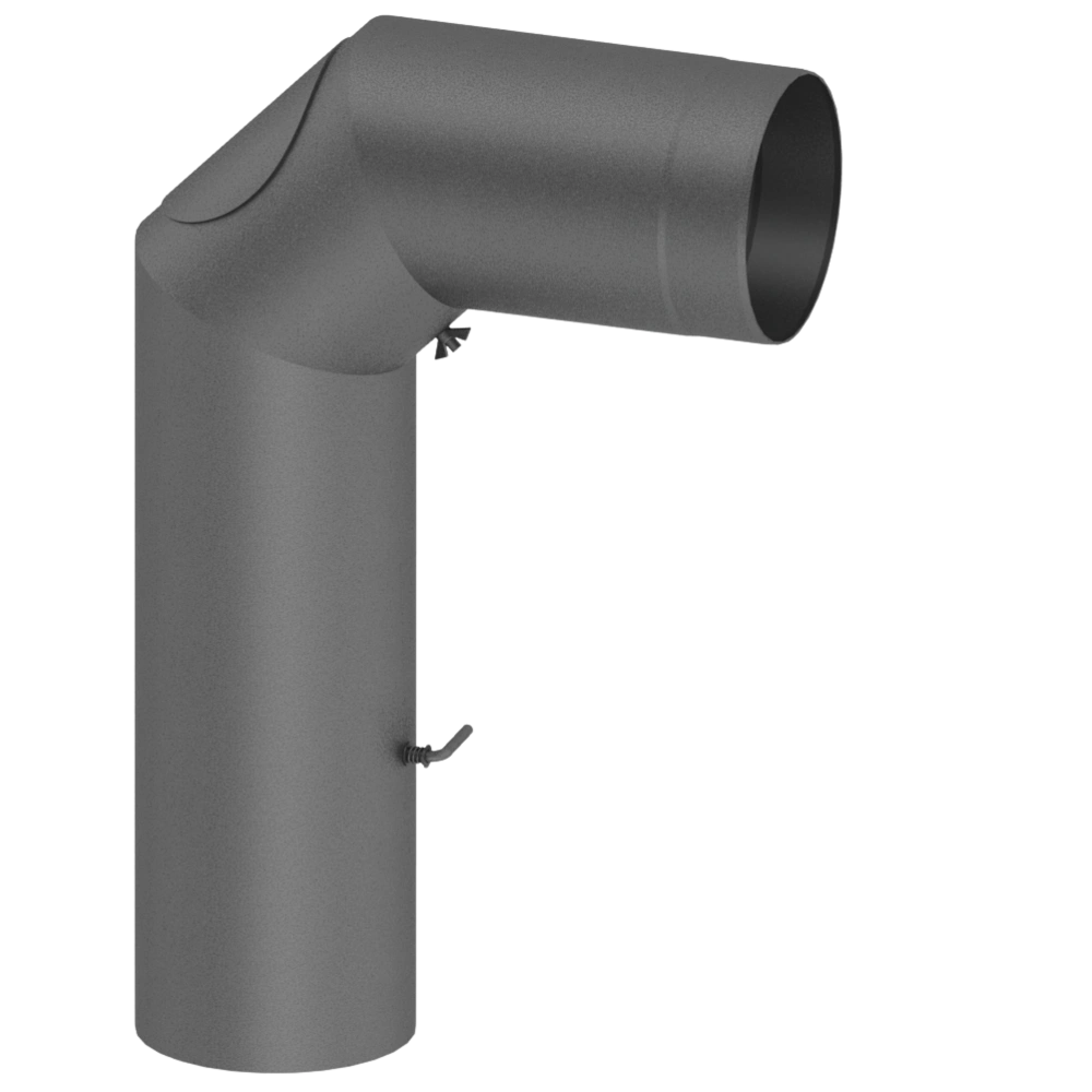 Coude de tuyau de poêle avec clapet d'étranglement pour le contrôle de la combustion et porte de nettoyage pour un entretien facile.