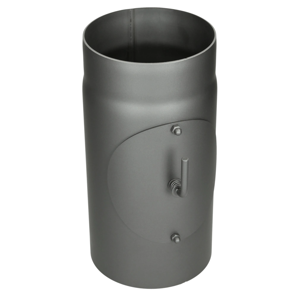 Tube de poêle avec clapet d'étranglement pour le contrôle de la combustion et porte de nettoyage pour un entretien facile.