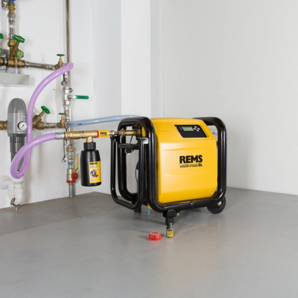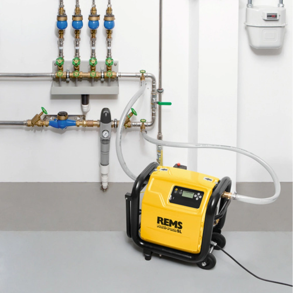 Puissante unité de rinçage et de test de pression avec compresseur alternatif sans huile. L'appareil peut être utilisé de diverses manières pour le rinçage à l'eau ou avec un mélange eau/air, la désinfection, le nettoyage et les tests de pression des systèmes de tuyauterie. L'appareil peut également être utilisé comme pompe à air comprimé et pour faire fonctionner des outils à air comprimé. L'ensemble Multi-Push SL dispose de plus de 10 programmes de rinçage et d'impression exécutés automatiquement. La saisie et le contrôle guidés par menu facilitent l'utilisation. L'appareil est également protégé contre le reflux. Les résultats des programmes de rinçage et de test sont enregistrés avec la date, l'heure et le numéro de protocole et peuvent être transférés sur une clé USB ou une imprimante à des fins de documentation. Grâce aux poignées intégrées, à la poignée en arc pliable et aux deux roues caoutchoutées, l'appareil est facile à transporter.