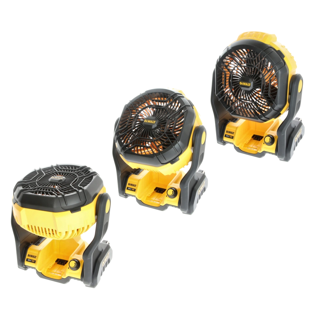 Ventilateur à vitesse variable alimenté par des batteries DeWalt. Quel que soit l'endroit, il est possible d'assurer rapidement et facilement une ventilation, l'évacuation des poussières ou bien de génerer un refroidissement...