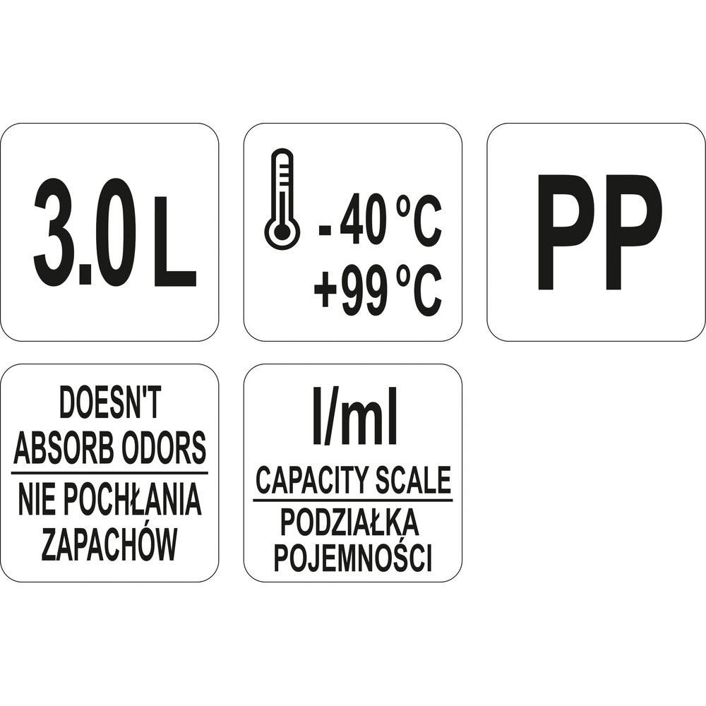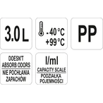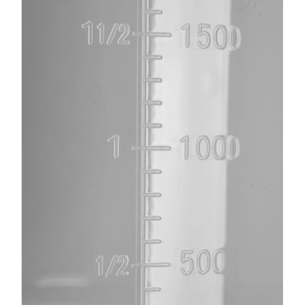 Le verre gradué a une échelle facilement lisible et une poignée stable. Le matériau est résistant à l'huile et à l'essence et convient à de nombreux acides, alcalis et solvants organiques.