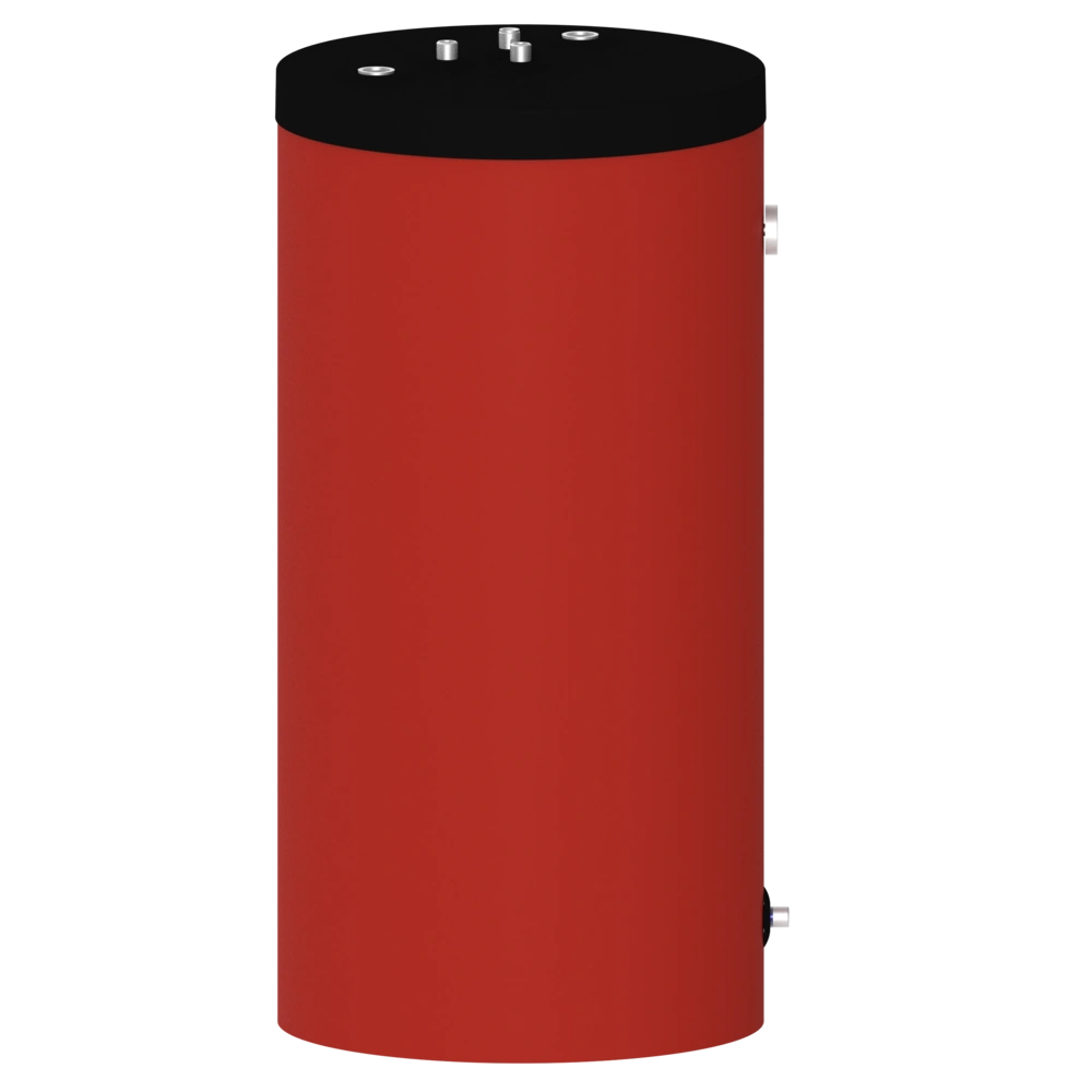 The storage tank is designed with connections towards the top, and its compact design makes it particularly suitable for DHW heating as a built-under fresh-water storage tank with wall-mounted heaters. The dimensions have been selected so that it is replacement-compatible with the built-under storage tanks of many renowned manufacturers. The storage tank can also demonstrate its strengths in new installations in conjunction with wall-mounted heaters.
