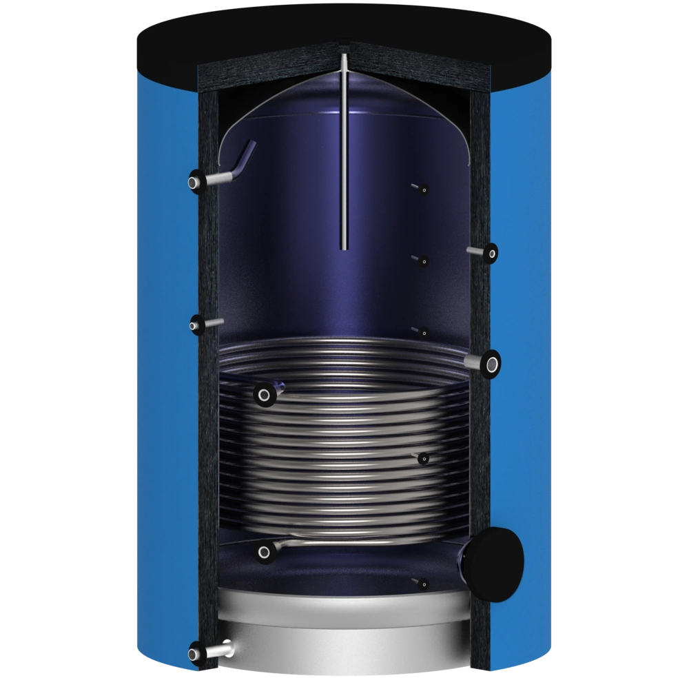 La superficie interna del bollitore ha una finitura smaltata di alta qualità. La superficie dello scambiatore di calore di dimensioni generose, che si estende fino al pavimento, garantisce un ottimo scambio di calore. Una flangia d'ispezione laterale consente una facile manutenzione e pulizia del bollitore e, se necessario, può essere equipaggiato con un manicotto per la resistenza. L'impareggiabile isolamento sottovuoto OEG dei cilindri ha perdite di calore significativamente inferiori rispetto al guscio di coibentazione dei cilindri standard presenti sul mercato.