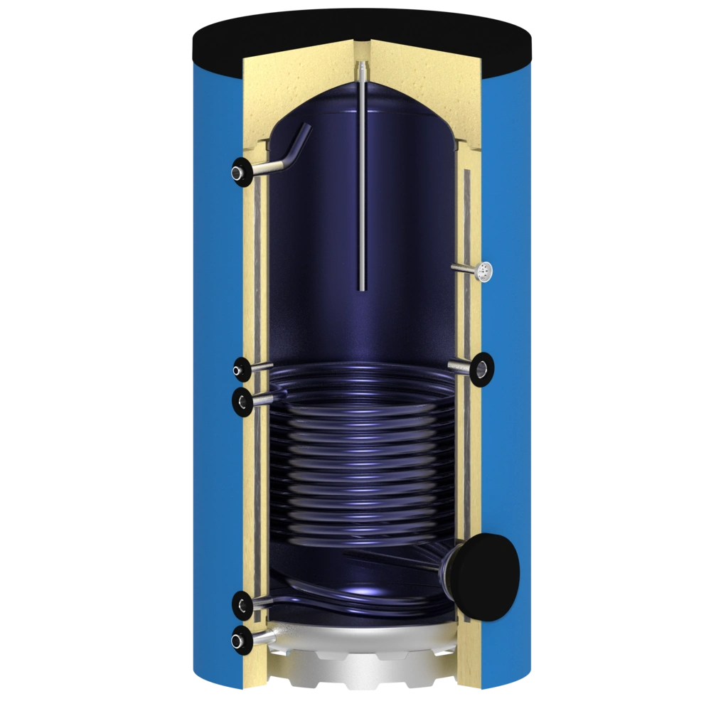 La superficie interna del bollitore ha una finitura smaltata di alta qualità. La superficie dello scambiatore di calore di dimensioni generose, che si estende fino al pavimento, garantisce un ottimo scambio di calore. Una flangia d'ispezione laterale consente una facile manutenzione e pulizia del bollitore e, se necessario, può essere equipaggiato con un manicotto per la resistenza. L'impareggiabile isolamento sottovuoto OEG dei cilindri ha perdite di calore significativamente inferiori rispetto al guscio di coibentazione dei cilindri standard presenti sul mercato.
