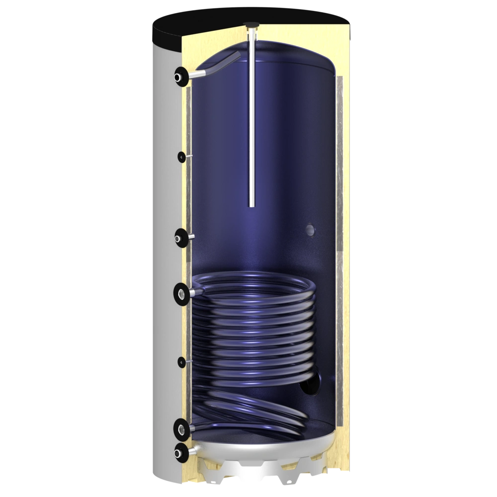 La superficie interna del bollitore ha una finitura smaltata di alta qualità. La superficie dello scambiatore di calore di dimensioni generose, che si estende fino al pavimento, garantisce un ottimo scambio di calore. Una flangia d'ispezione laterale consente una facile manutenzione e pulizia del bollitore e, se necessario, può essere equipaggiato con un manicotto per la resistenza. L'impareggiabile isolamento sottovuoto OEG dei cilindri ha perdite di calore significativamente inferiori rispetto al guscio di coibentazione dei cilindri standard presenti sul mercato.