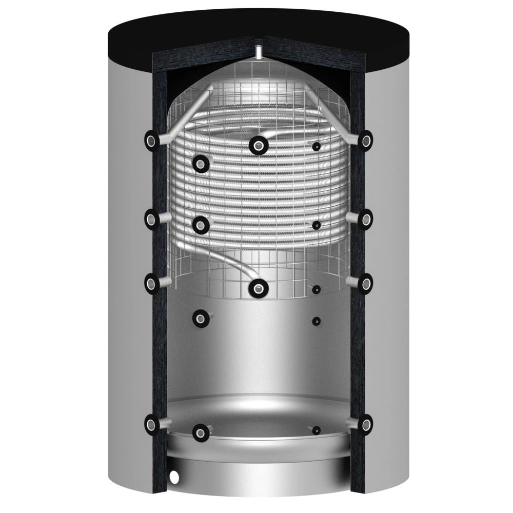 Termoaccumulo per AC tecnica con produzione istantanea di ACS per garantire i più alti standard di igiene dell’acqua potabile ed efficienza energetica. Questo termoaccumulo si differenzia in modo sostanziale dai tradizionali serbatoi di ACS di grande volume. Un tubo corrugato in acciaio inox integrato separa l'acqua potabile da quella di riscaldamento e, al contempo, funge da potente scambiatore di calore. In questo modo, si combinano i vantaggi di un serbatoio di accumulo con quelli di uno scaldacqua istantaneo: l’acqua di riscaldamento funge da vero e proprio accumulatore di calore, mentre l’acqua potabile attraversa il tubo corrugato solo nel momento in cui viene prelevata. Il risultato è un riscaldamento dell'acqua sanitaria sicuro anti- legionella, senza la necessità di programmi di protezione specifici nel regolatore. In questo modo, l'utenza dispone sempre di acqua calda sanitaria, igienicamente perfetta e alla temperatura desiderata.