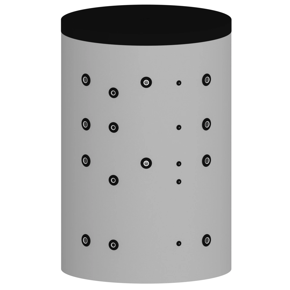 Naast de bufferaansluitingen A en N voor aanvoer en retour, blijven er 5 aansluitingen over voor andere doeleinden. De productafbeelding toont een 3D-weergave van de opslagtank. Stel het filter in op ALLES om de exacte lay-out van de aansluitingen te zien.