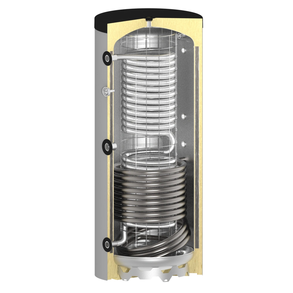 Deze boiler is een hygiëne boiler. Het tapwater wordt volgens het principe van een doorstroomverwarmer verwarmd, dat gebeurt in de RVS buis. Het CV water zit in de boiler, om de RVS spiraal heen. Het CV water kan door de extra warmtewisselaar met behulp van solar verwarmd worden.