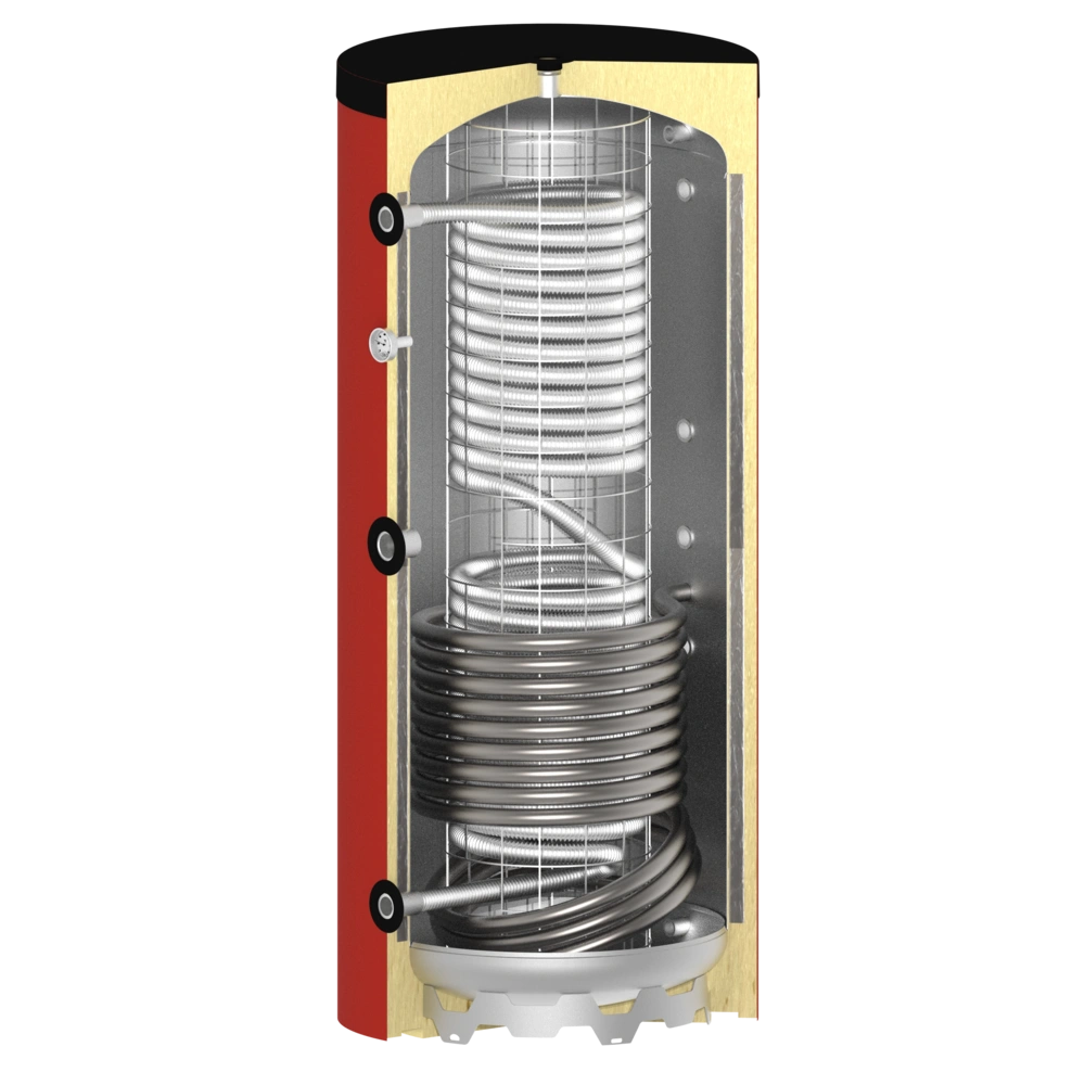 Beim Speicher Accumulatore acqua fresca 200 litri con 1 scambiatore di calore a tubo liscio gibt es nur den Zusatzwärmetauscher unten, in der Standartausführung.