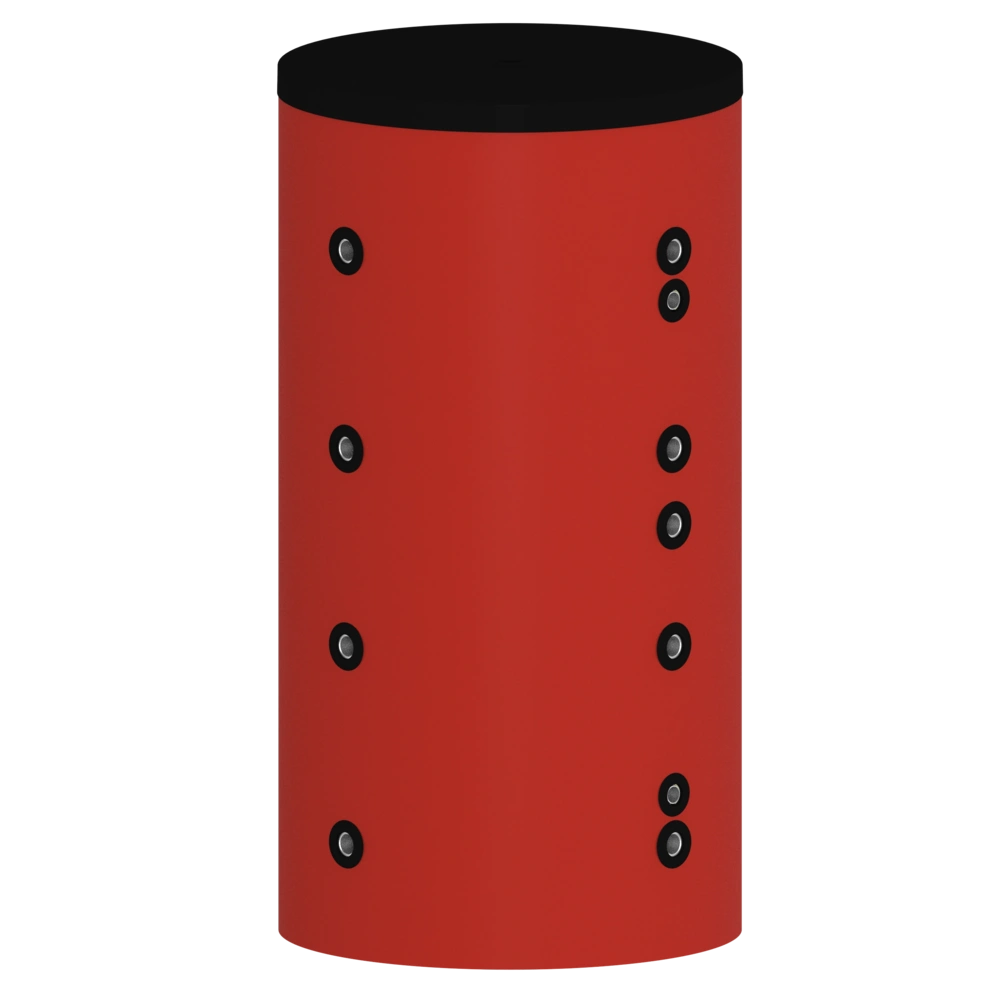 Naast de bufferaansluitingen A en N voor aanvoer en retour, blijven er 5 aansluitingen over voor andere doeleinden. De productafbeelding toont een 3D-weergave van de opslagtank. Stel het filter in op ALLES om de exacte lay-out van de aansluitingen te zien.