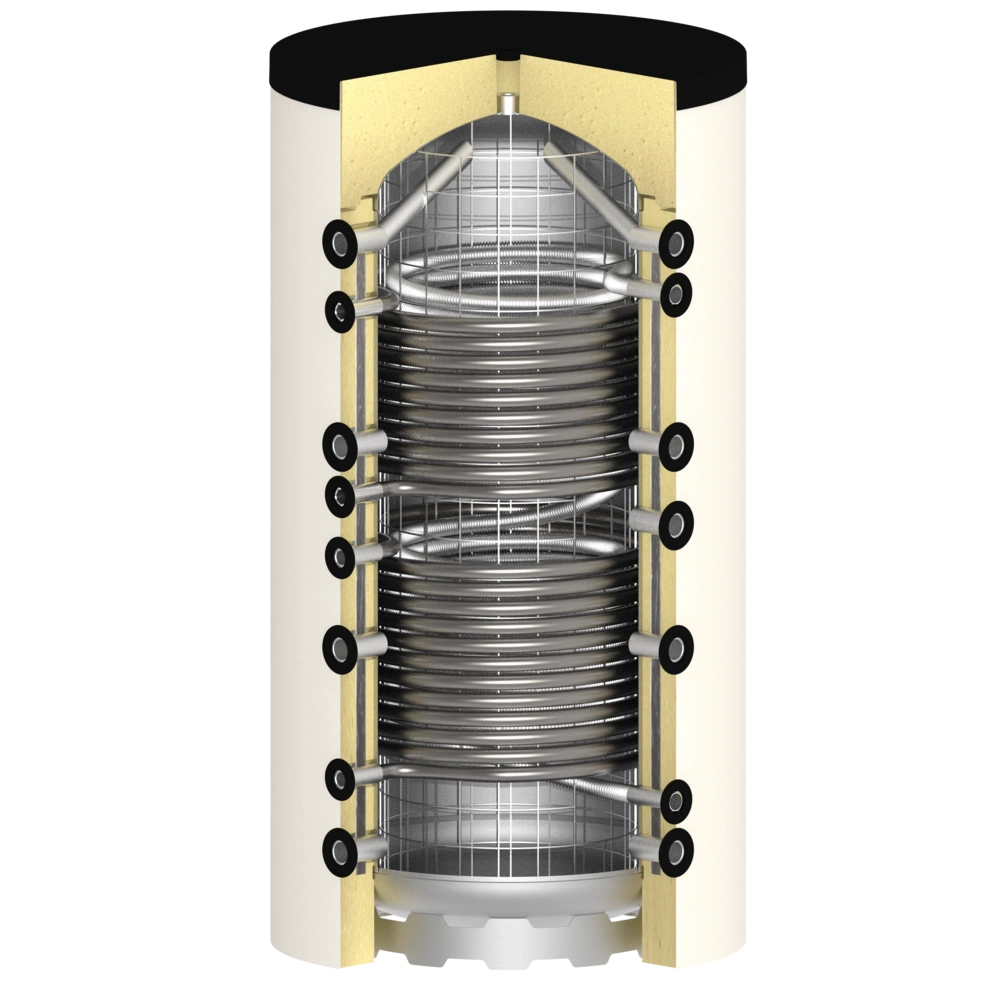 Zowel een buffervat als een verswaterboiler kunnen aanvullend worden uitgerust met 1 of 2 buiswarmtewisselaars voor een of meerdere warmtebronnen.