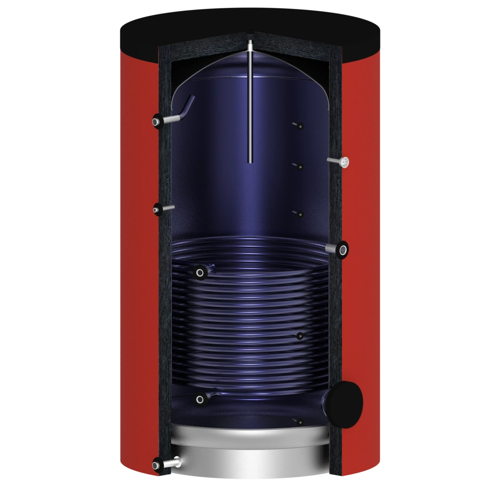 La superficie interna del bollitore ha una finitura smaltata di alta qualità. La superficie dello scambiatore di calore di dimensioni generose, che si estende fino al pavimento, garantisce un ottimo scambio di calore. Una flangia d'ispezione laterale consente una facile manutenzione e pulizia del bollitore e, se necessario, può essere equipaggiato con un manicotto per la resistenza. L'impareggiabile isolamento sottovuoto OEG dei cilindri ha perdite di calore significativamente inferiori rispetto al guscio di coibentazione dei cilindri standard presenti sul mercato.