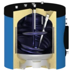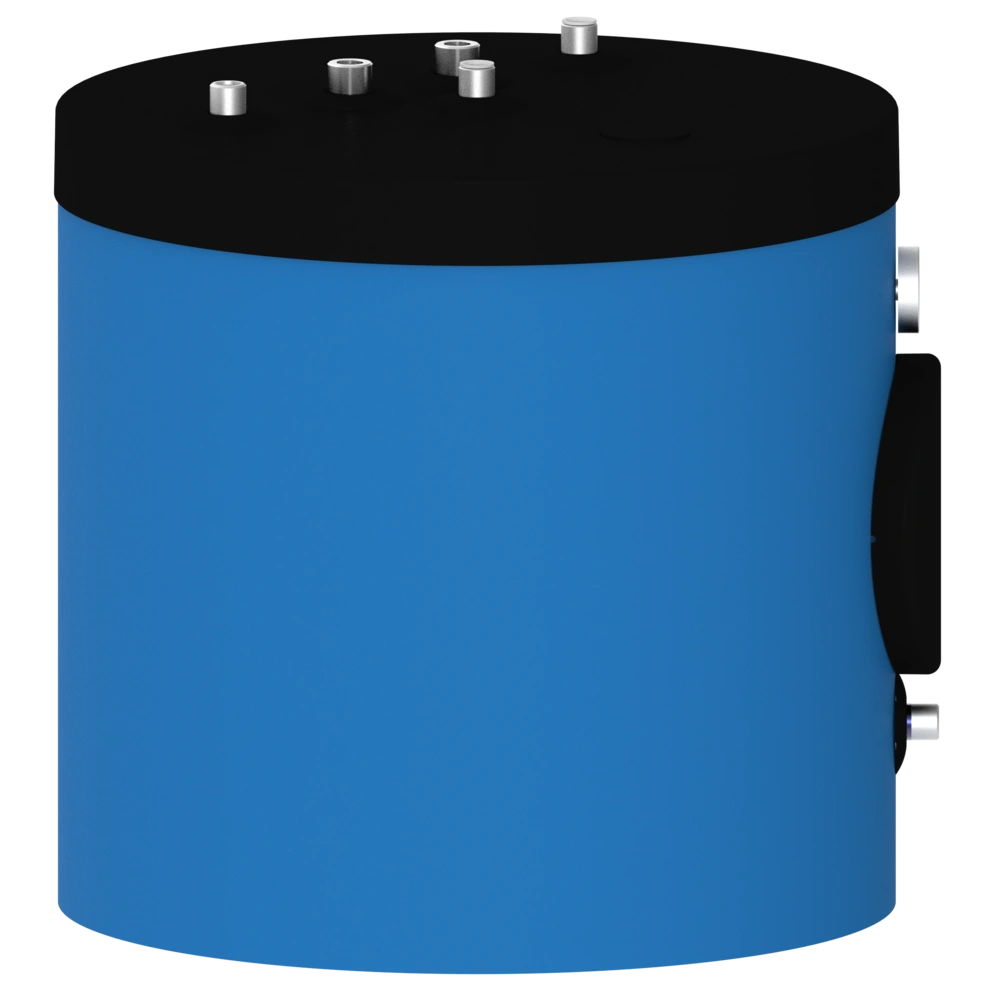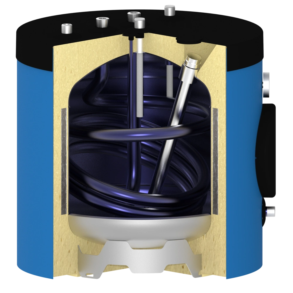 Tutte le informazioni sul prodottoBollitore per acqua calda a pavimento con connessioni aeree per l'installazione sotto soffitti inclinati, scale e ovunque non ci sia spazio sufficiente per i normali bollitori a pavimento. Grazie al suo design compatto, il bollitore è particolarmente adatto come bollitore a pavimento per apparecchi di riscaldamento a parete. L'ampia superficie di scambio termico, che si estende fino al pavimento, garantisce un'ottima trasmissione del calore. Una flangia di ispezione laterale consente una facile manutenzione e pulizia del bollitore che, se necessario, può essere dotato di un elemento riscaldante elettrico. L'ineguagliabile isolamento sottovuoto OEG dei cilindri ha perdite di calore significativamente inferiori rispetto all'isolamento dei cilindri standard presenti sul mercato.