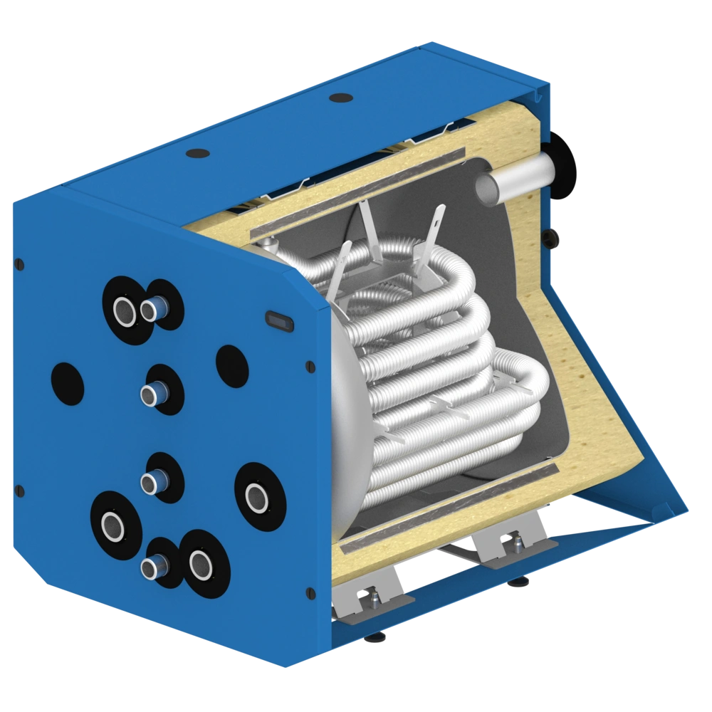 Lo scambiatore di calore aggiuntivo offre al cliente la possibilità di utilizzare altri generatori di calore e di immettere la loro energia negli accumuli igienici.