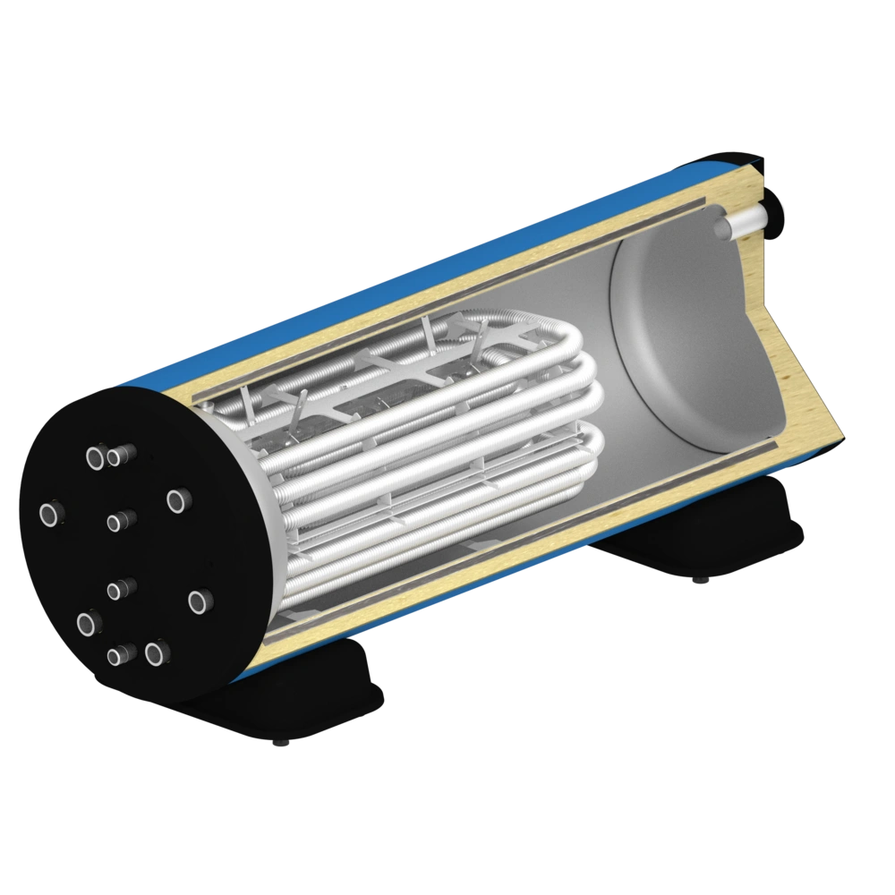 Is er ook een drinkwater i.p.v. installatiewater liggende boiler verkrijgbaar met 1 of 2 spiralen t.b.v. warmtepomp en solar ?
