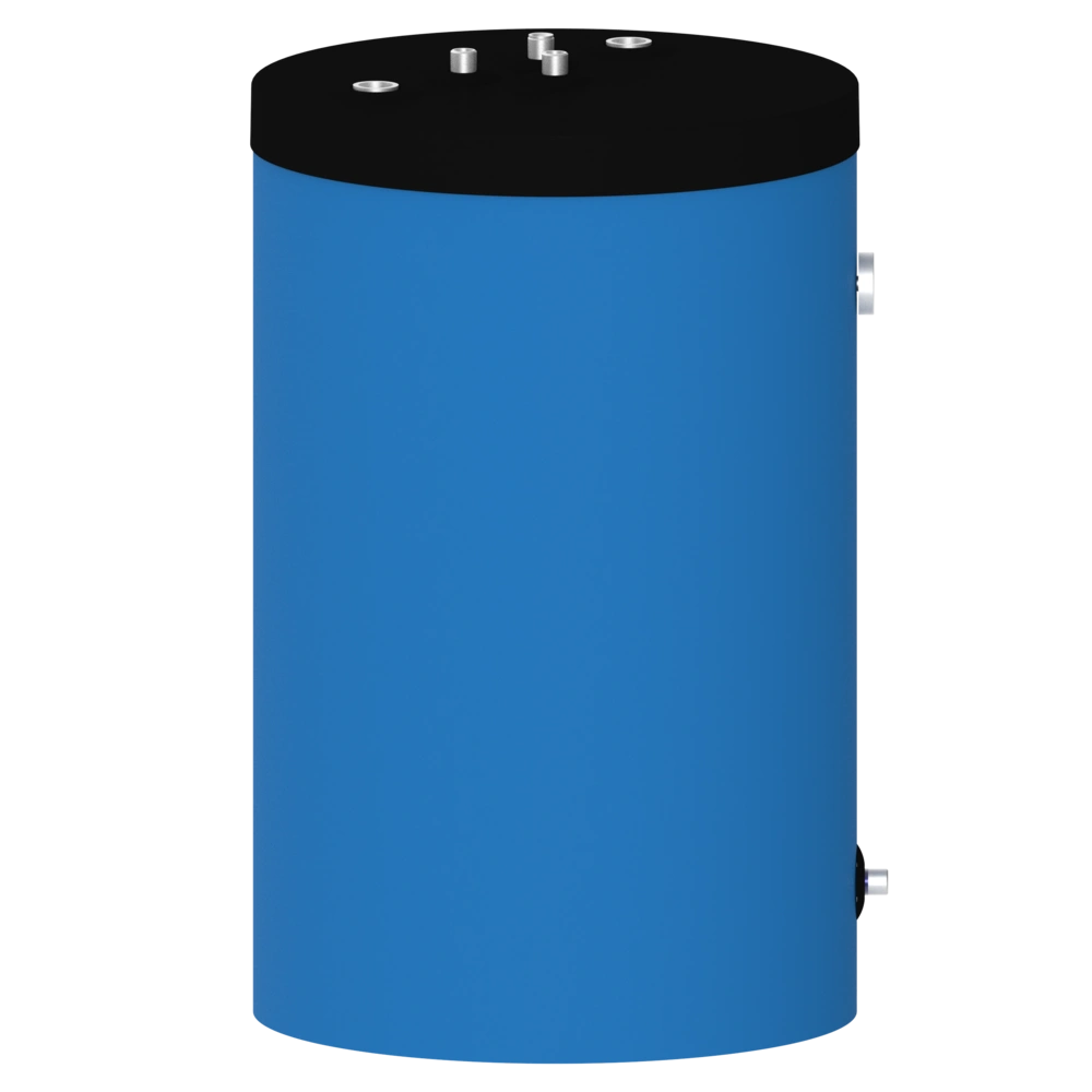 The storage tank is designed with connections towards the top, and its compact design makes it particularly suitable for DHW heating as a built-under fresh-water storage tank with wall-mounted heaters. The dimensions have been selected so that it is replacement-compatible with the built-under storage tanks of many renowned manufacturers. The storage tank can also demonstrate its strengths in new installations in conjunction with wall-mounted heaters.