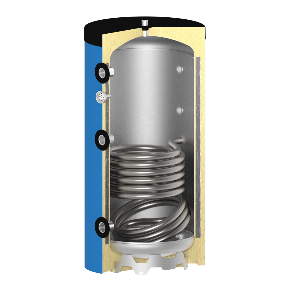 Het spiraal van een buffervat is niet geschikt voor zuurstofrijk tapwater, maar voor een gesloten circuit naar een warmteopwekker.