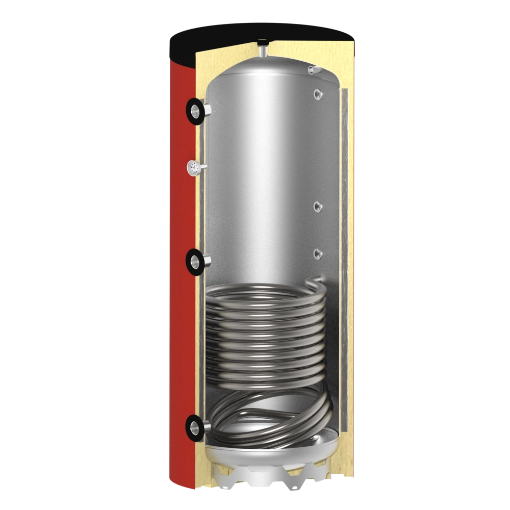 Het spiraal van een buffervat is niet geschikt voor zuurstofrijk tapwater, maar voor een gesloten circuit naar een warmteopwekker.