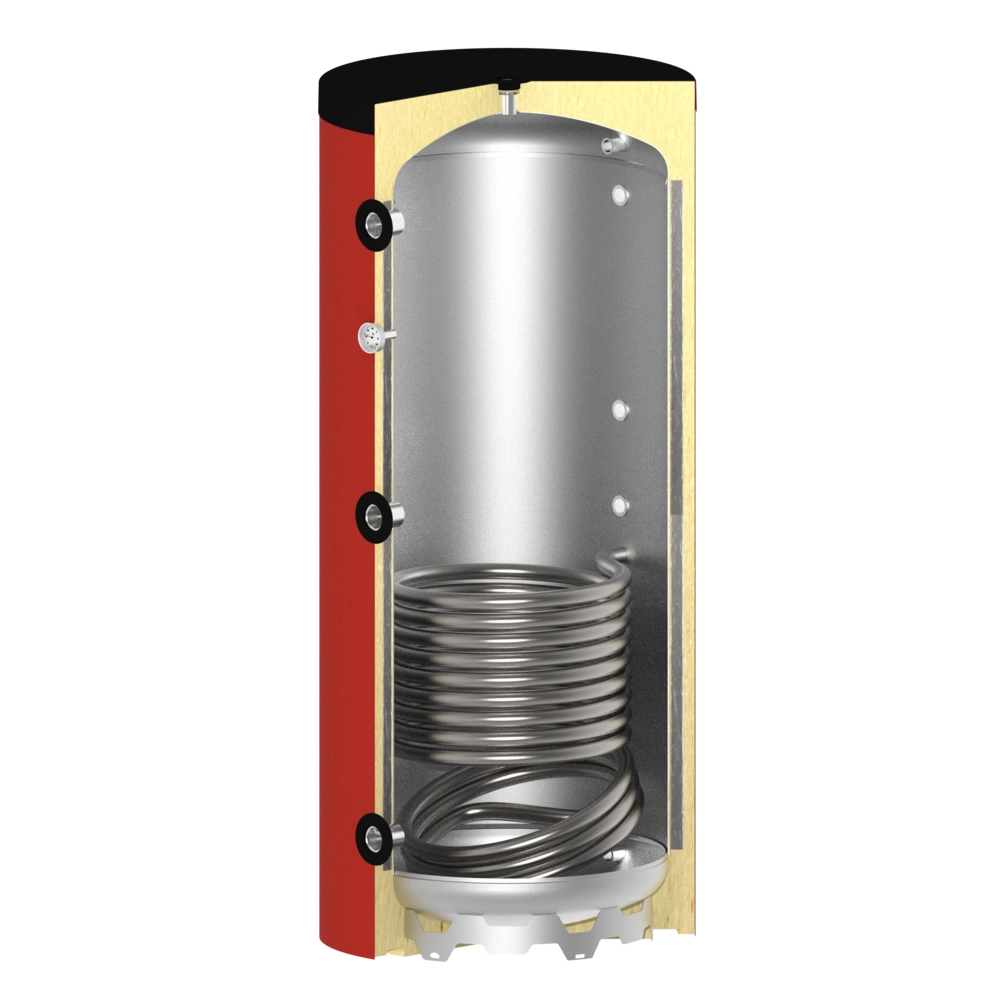 Het spiraal van een buffervat is niet geschikt voor zuurstofrijk tapwater, maar voor een gesloten circuit naar een warmteopwekker.