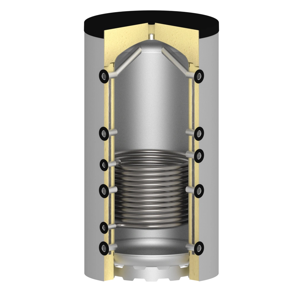 Tutte le informazioni sul prodottoAccumulo inerziale di qualità superiore per le esigenze più elevate di accumulo di calore e di efficienza. Soprattutto quando si utilizzano generatori di calore che raggiungono un'efficienza ottimale solo a pieno carico (ad esempio, molte caldaie a combustibile solido). Durante il funzionamento del generatore di calore, viene generata una quantità di calore superiore all'utenza. Il calore in eccesso riscalda l'acqua dell'accumulo inerziale e viene così immagazzinato. Il bollitore tampone OEG è adatto come accumulatore di caricamento stratificato per impianti solari, pompe di calore, caldaie a biomassa, caldaie a pellet e può essere utilizzato anche nel teleriscaldamento. Lo scambiatore di calore a tubo liscio aggiuntivo consente di integrare un generatore di calore supplementare e di immettere la sua energia nell'accumulo inerziale.