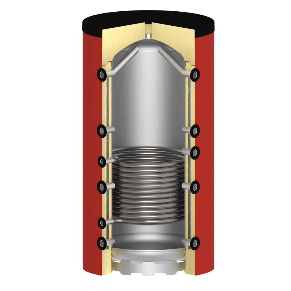 Het spiraal van een buffervat is niet geschikt voor zuurstofrijk tapwater, maar voor een gesloten circuit naar een warmteopwekker.