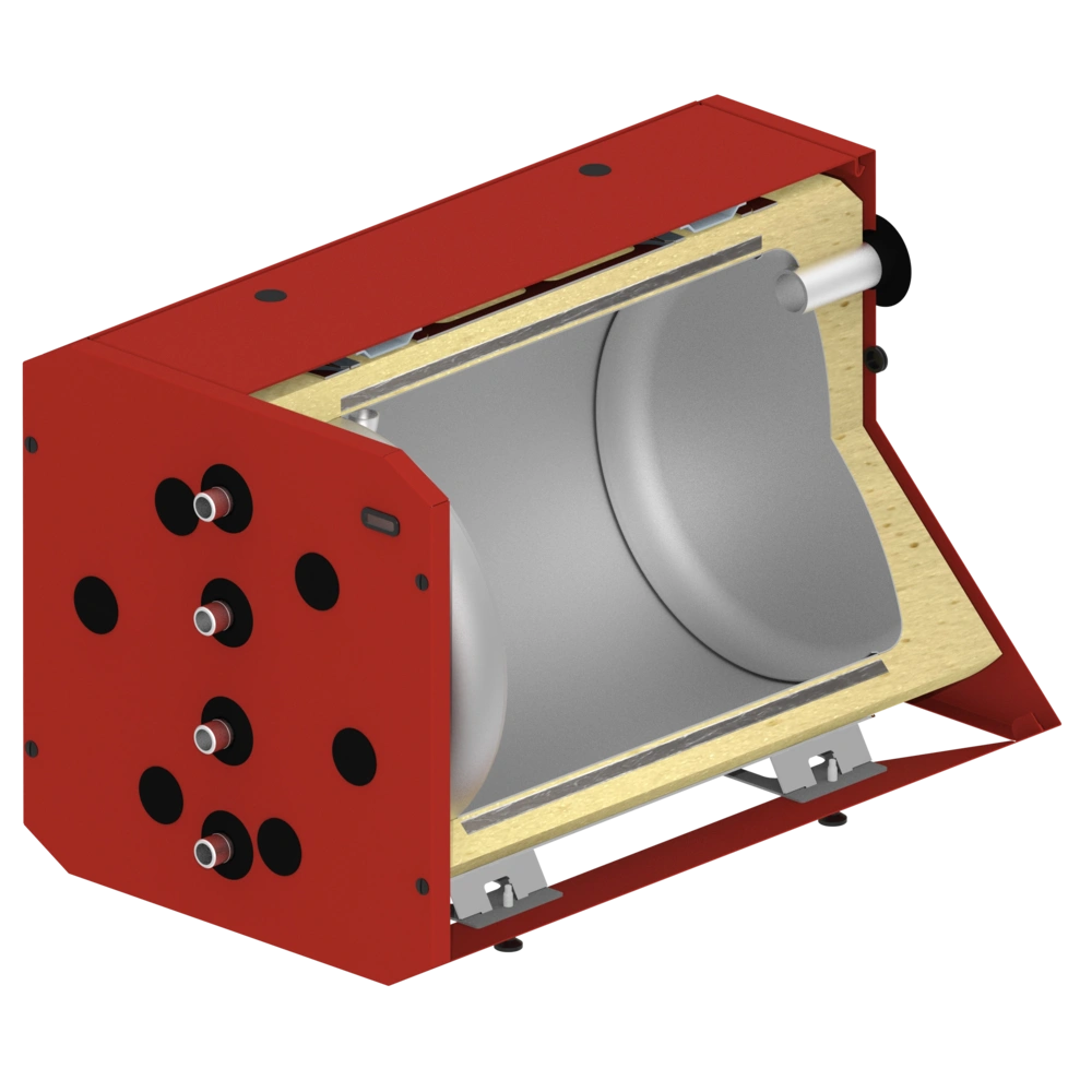 Horizontal buffer storage tank as built-under storage tank for oil- and gas-condensing boilers of almost any manufacturer. The stable construction allows loads of up to 500 kg. The unrivalled OEG vacuum...