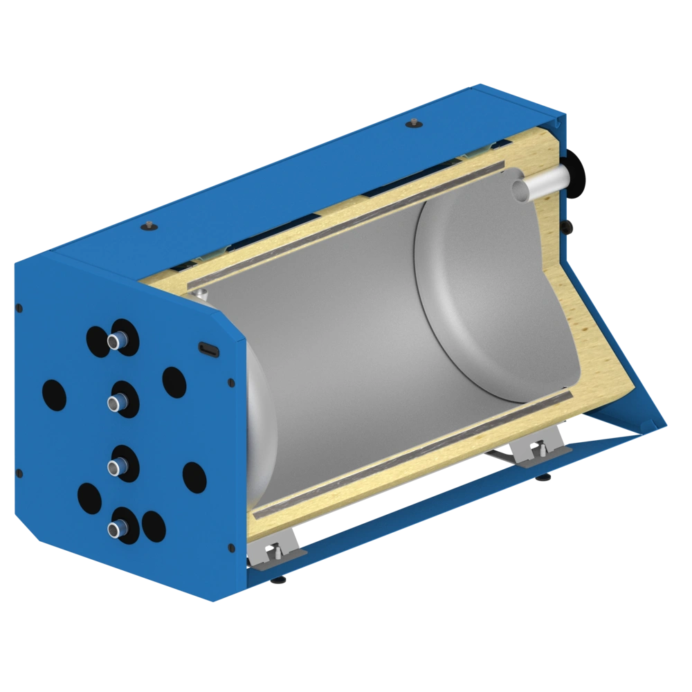 Tutte le informazioni sul prodottoHorizontal buffer storage tank as built-under storage tank for oil- and gas-condensing boilers of almost any manufacturer. The stable construction allows loads of up to 500 kg. The unrivalled OEG vacuum insulation of the storage tanks has significantly lower heat losses than the insulation of common storage tanks available on the market.