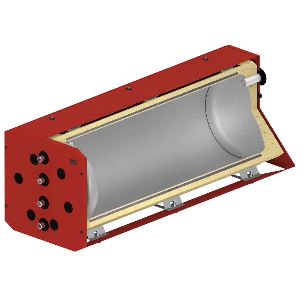 Tutte le informazioni sul prodottoHorizontal buffer storage tank as built-under storage tank for oil- and gas-condensing boilers of almost any manufacturer. The stable construction allows loads of up to 500 kg. The unrivalled OEG vacuum insulation of the storage tanks has significantly lower heat losses than the insulation of common storage tanks available on the market.