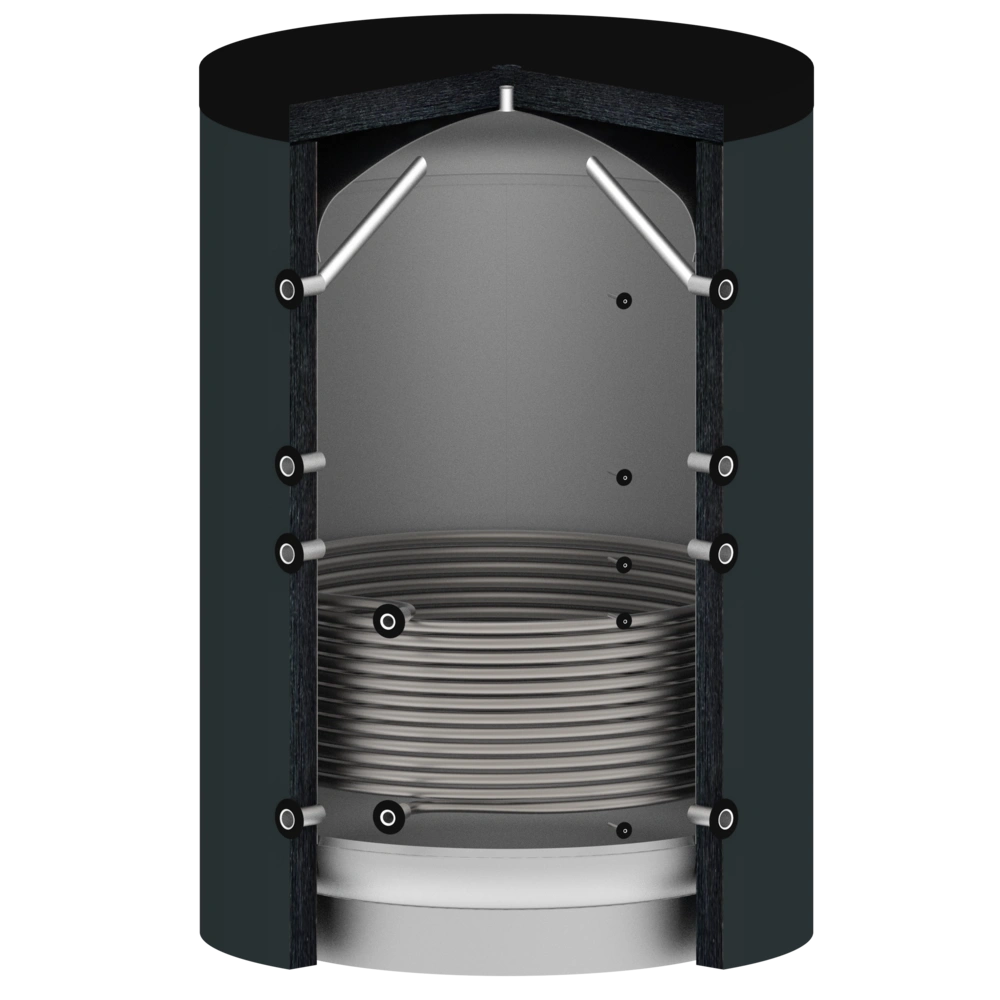 Accumulo inerziale di qualità superiore per le esigenze più elevate di accumulo di calore e di efficienza. Soprattutto quando si utilizzano generatori di calore che raggiungono un'efficienza ottimale solo a pieno carico (ad esempio, molte caldaie a combustibile solido). Durante il funzionamento del generatore di calore, viene generata una quantità di calore superiore all'utenza. Il calore in eccesso riscalda l'acqua dell'accumulo inerziale e viene così immagazzinato. Il bollitore tampone OEG è adatto come accumulatore di caricamento stratificato per impianti solari, pompe di calore, caldaie a biomassa, caldaie a pellet e può essere utilizzato anche nel teleriscaldamento. Lo scambiatore di calore a tubo liscio aggiuntivo consente di integrare un generatore di calore supplementare e di immettere la sua energia nell'accumulo inerziale.