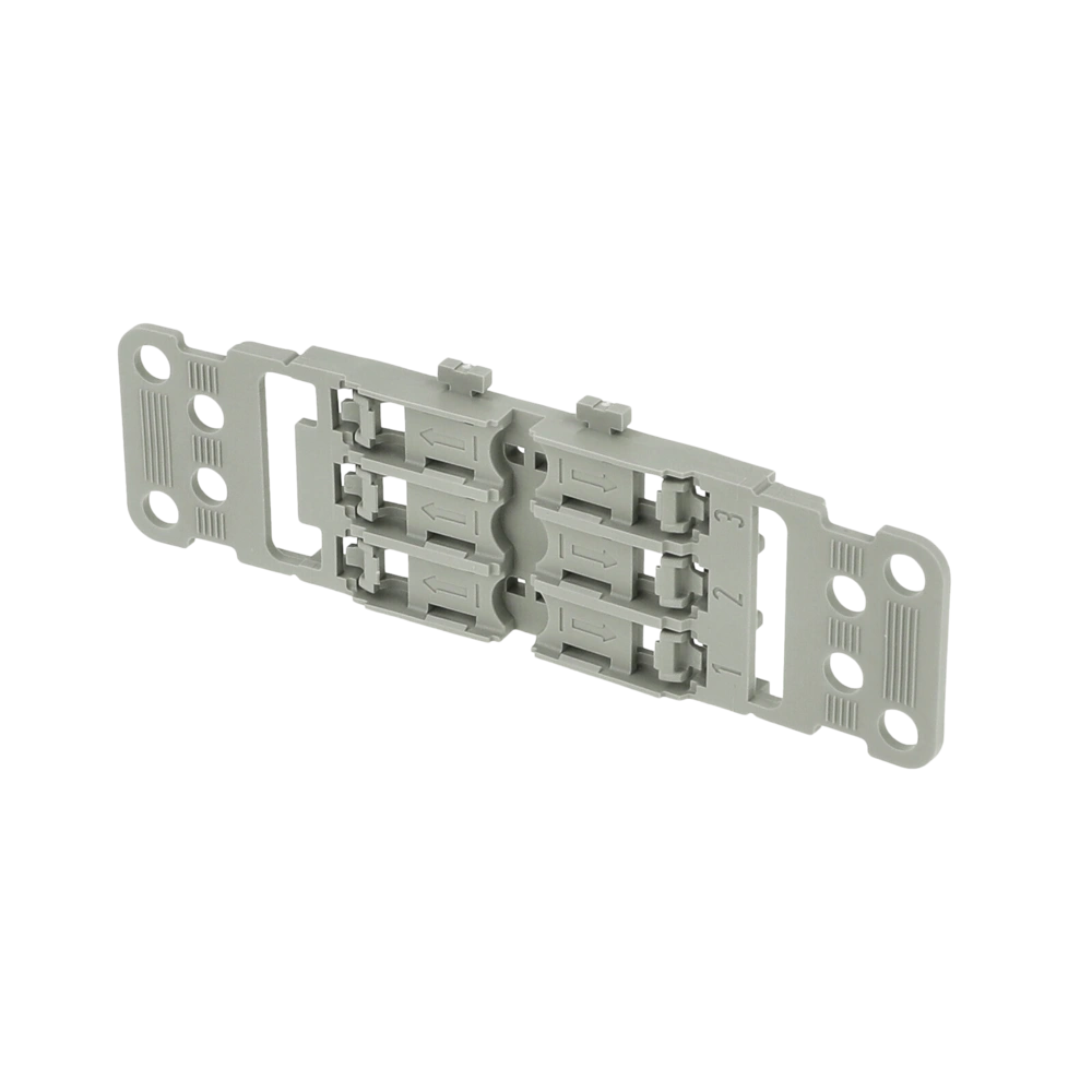 Piastra adattatore per il fissaggio di connettori a passaggio della serie 221 su guide DIN e profili portanti. I connettori a passaggio vengono fissati tramite un semplice scatto sulla piastra adattatore...