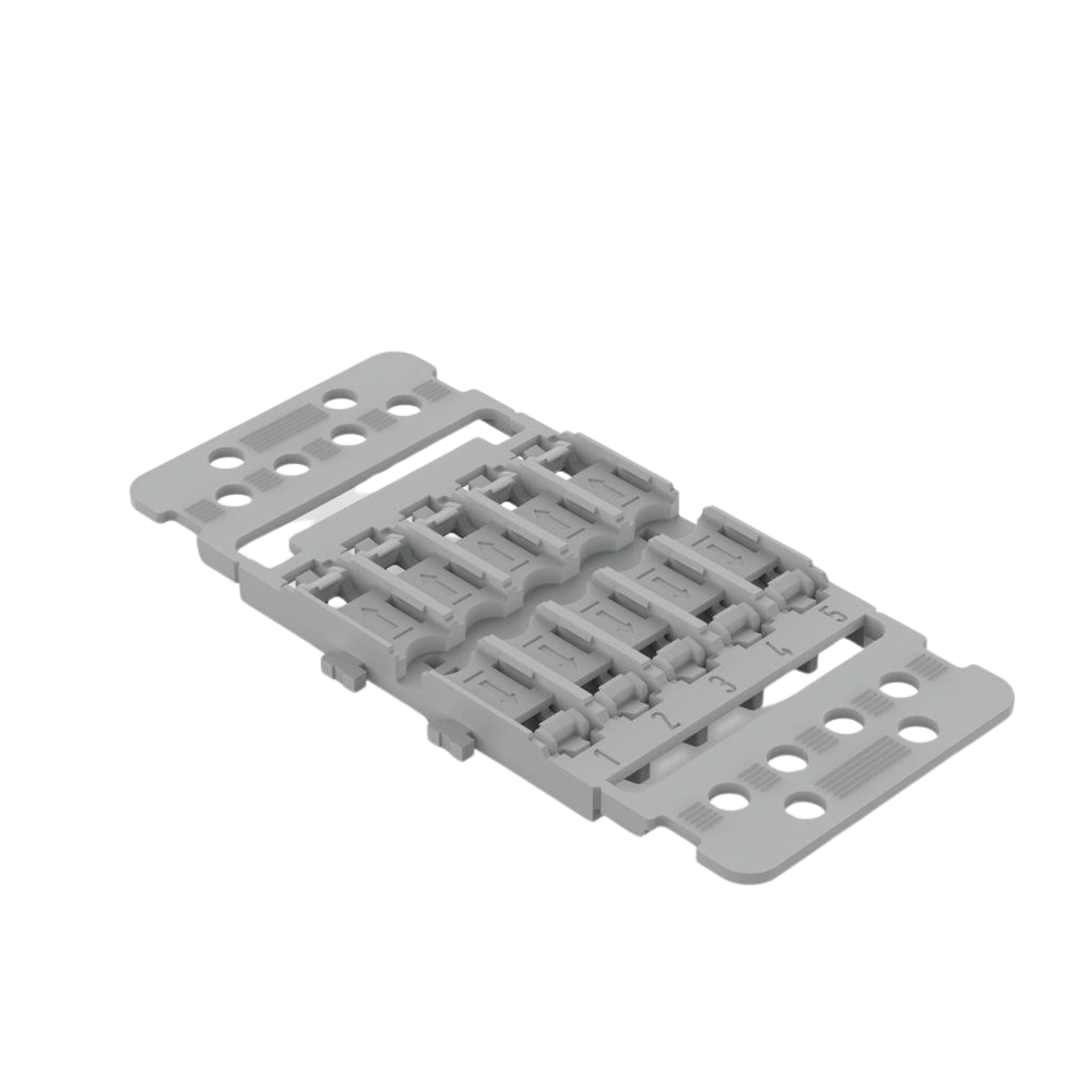 Piastra adattatore per il fissaggio di connettori a passaggio della serie 221 su guide DIN e profili portanti. I connettori a passaggio vengono fissati tramite un semplice scatto sulla piastra adattatore...