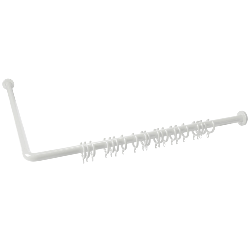 Die Duschvorhangstange ist zweischenklig, sie ist 1000 x 1000 mm lang. Die technische Dokumentation wird hinterlegt.