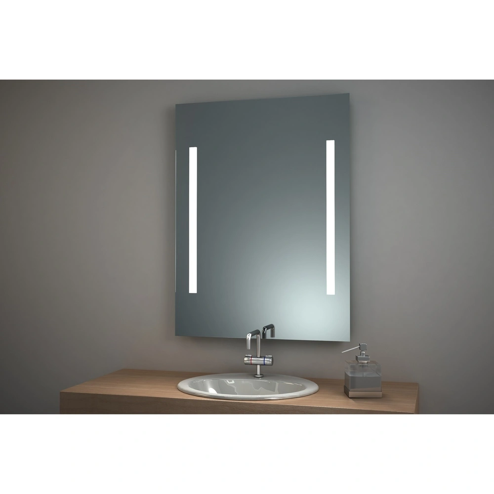 Lo specchio illuminato Bero ha strisce decorative LED satinate ciascuna sul lato destro e sinistro di 2 x 700 mm. Lo specchio luminoso è senza interruttore e ha profili di montaggio in alluminio.