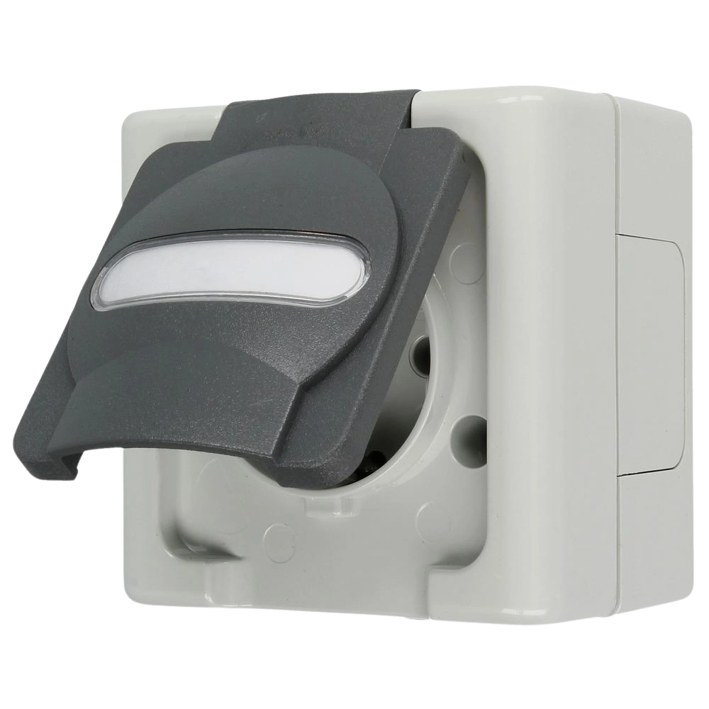 La presa con contatto di terra con chiusura è adatta per locali umidi e contiene una targhetta illuminata. Un montaggio verticale e orizzontale è possibile. I materiali usati sono privi di alogeno e PVC e resistente ai chimici...